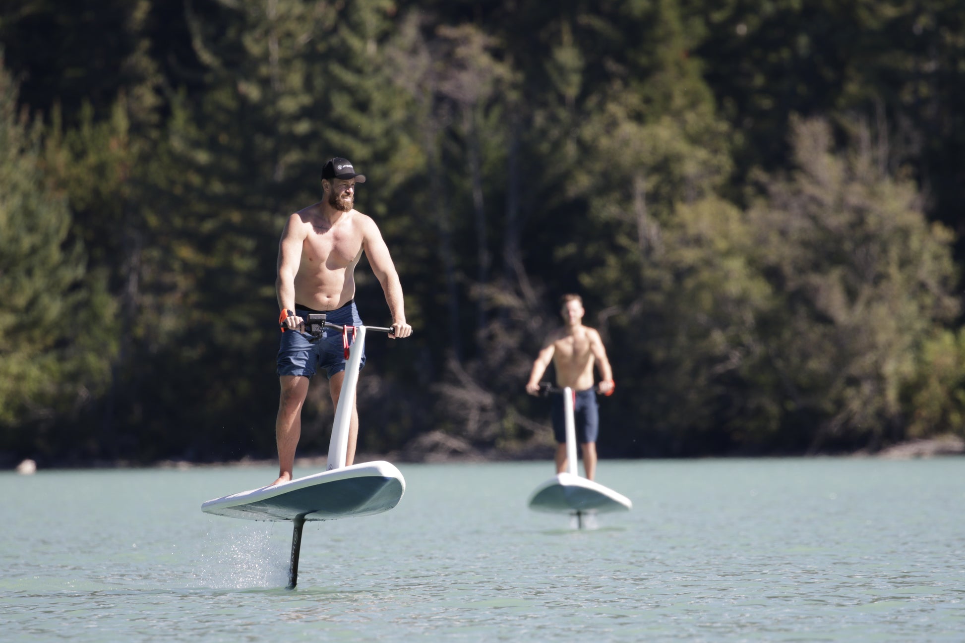 Built for riders of all skill levels, shapes and sizes, This is our most popular and user friendly model. Featuring handlebar mounts, reduced side-to-side rock and V-shaped nose entry for minimum resistance on touch downs. Can be ridden with handlebars or detach them to ride 'surf style'. Doubles as a motorized surfboard. A user-friendly & fun ride the whole family can enjoy.