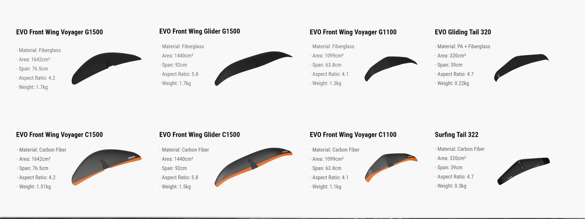 - Front Wing: Choose from Glider (performance) or Voyager (stability)